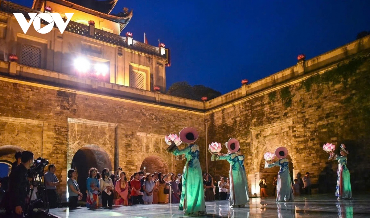 An art performance inside the Thang Long imperial citadel at night