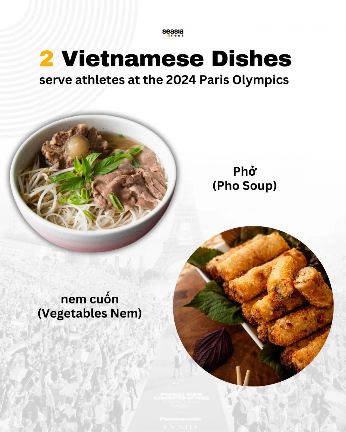 According to website Seasia, an independent and trusted premier source of news regarding Southeast Asia, the 2024 Paris Olympic Organizing Committee has officially announced the menu for athletes participating in the world's largest sporting event, with the list featuring two familiar Vietnamese favourites.