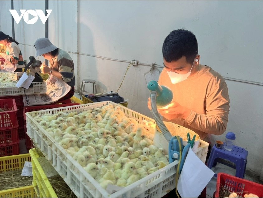 At the hatchery of Ngoc Mung Poultry Breeding Joint Stock Company in Lien Ha Commune, Dong Anh District, Hanoi, dozens of workers sit side by side at long tables, sorting through newly hatched chicks with soft, golden down. The constant chirping of chicks blends with the humming of incubation machines, creating a distinctive atmosphere of precision and focus.