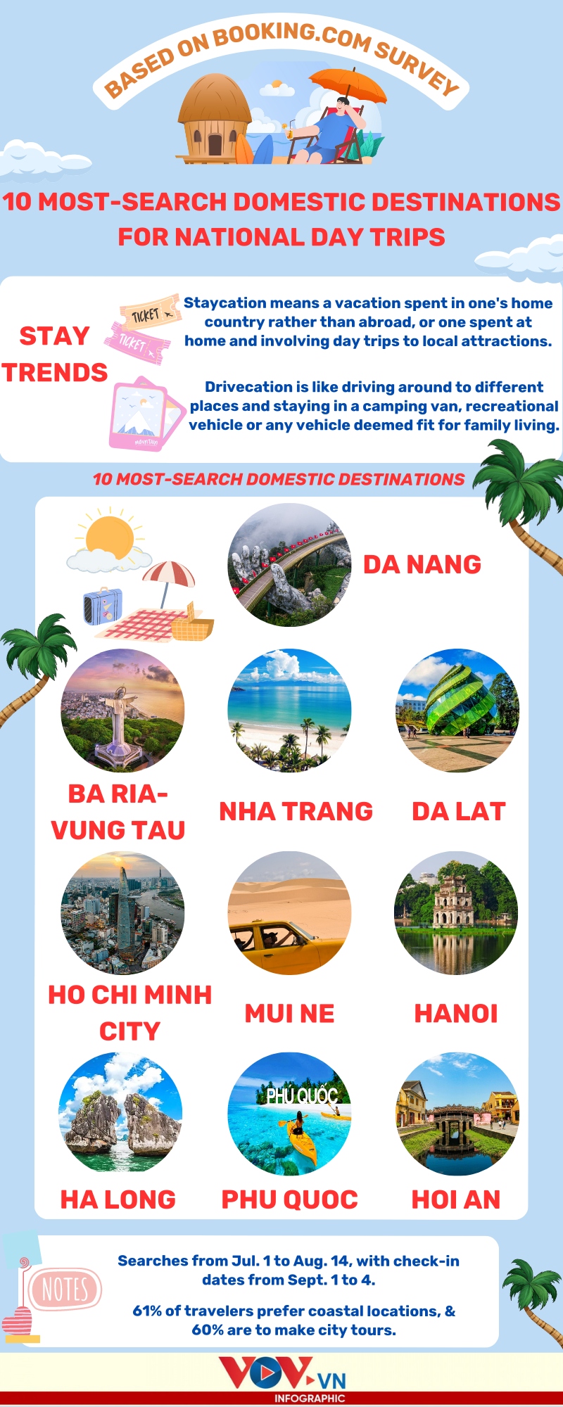 VOV.VN - The coastal city of Da Nang has been named as the most-searched destination by Vietnamese travelers looking forward to getting away during the upcoming National Day holiday, followed by Ba Ria-Vung Tau province and Nha Trang city, according to Booking.com.