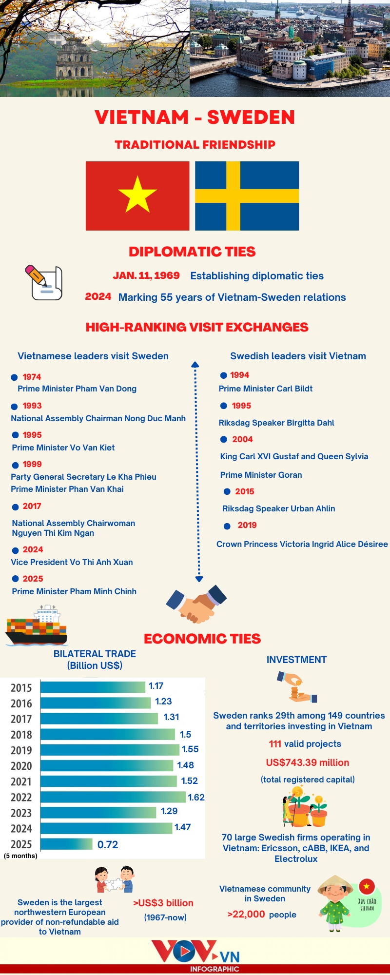 VOV.VN - A high-ranking Vietnamese delegation led by Prime Minister Pham Minh Chinh is paying an official visit to Sweden from June 12-13, underscoring Vietnam’s commitment to strengthening its traditional friendship and multifaceted cooperation with the Scandinavian country.