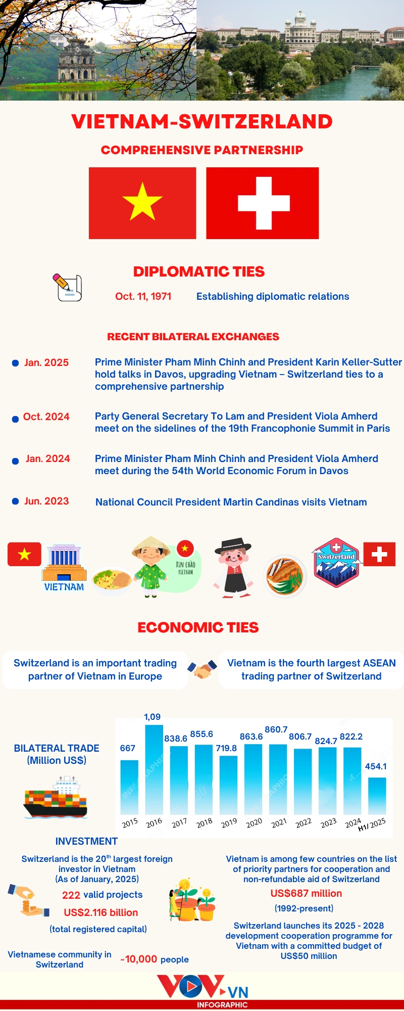 VOV.VN - National Assembly Chairman Tran Thanh Man is paying a working visit to Switzerland from July 27 – 30 where he is scheduled to attend the sixth World Conference of Speakers of Parliament and engage in bilateral activities. Let’s have a look at the comprehensive partnership between the two countries.
