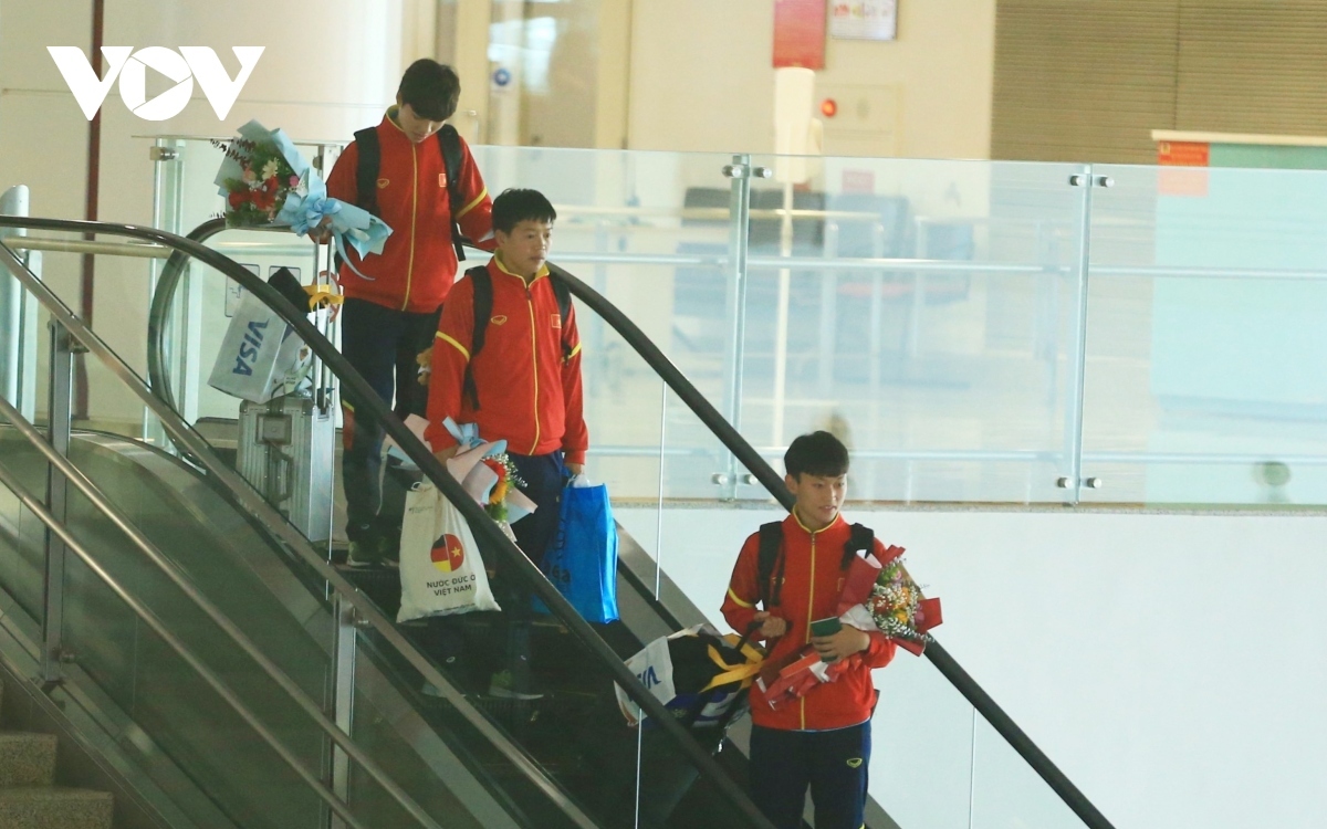 Captain Huynh Nhu and her teammates are greeted upon arrival at Tan Son Nhat International Airport in Ho Chi Minh City.