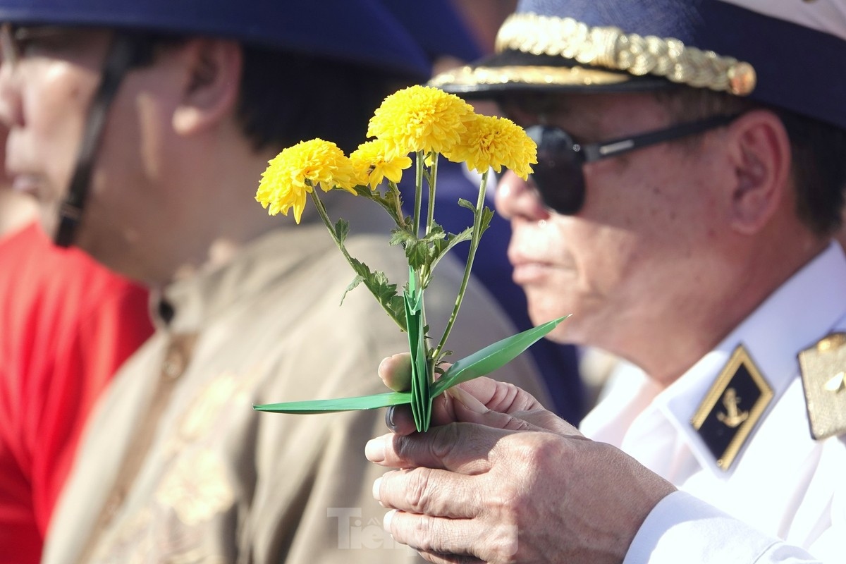 The delegation joins soldiers in a national flag saluting ceremony held on Truong Sa island.