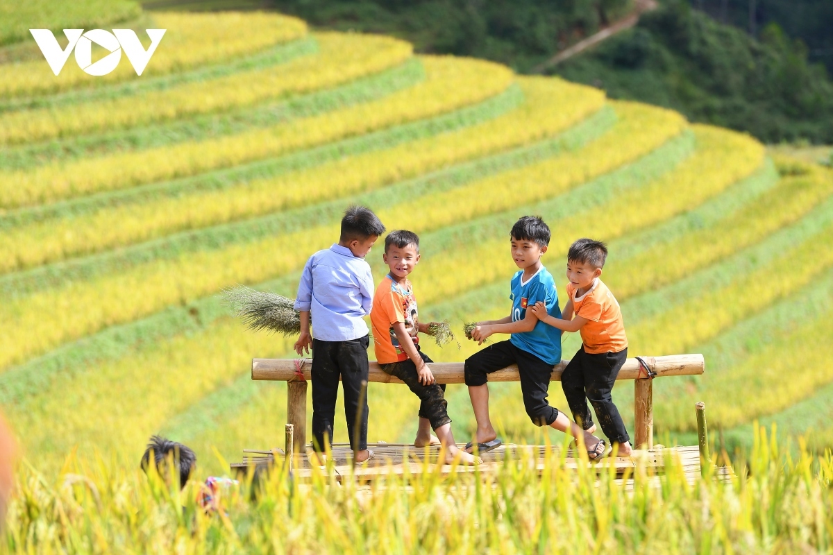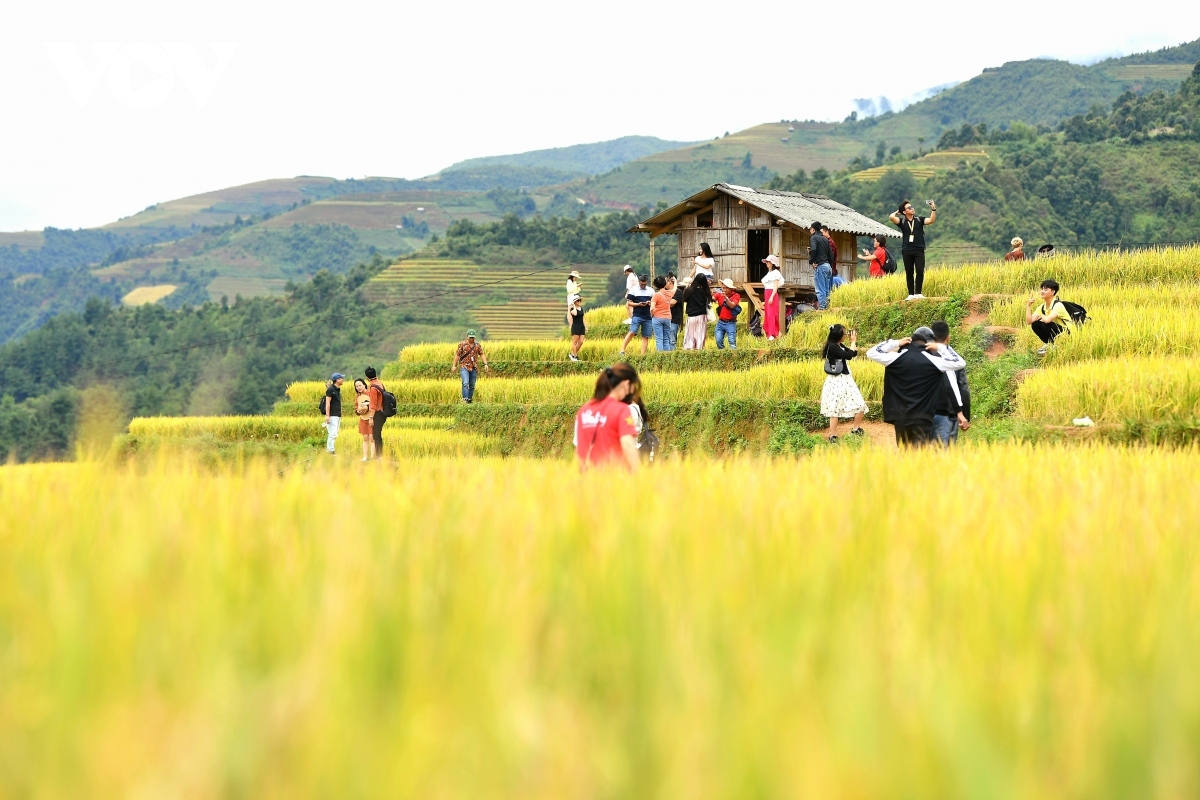 VOV.VN - Terraced rice fields located throughout the mountain slopes of Mu Cang Chai district in the northern mountainous province of Yen Bai represent ideal tourist destinations, particularly in the season of ripening rice.
