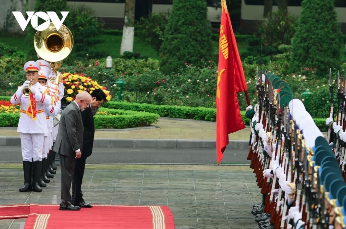 VOV.VN - A welcome ceremony hosted by State President Luong Cuong for his Brazilian counterpart Luiz Inacio Lula da Silva was held at the Presidential Palace in Hanoi on March 28.