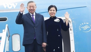 VOV.VN - Vietnamese Party General Secretary To Lam, accompanied by his spouse and a high-ranking delegation, arrived at Wattay International Airport in Vientiane on December 1, beginning a State visit to Laos.