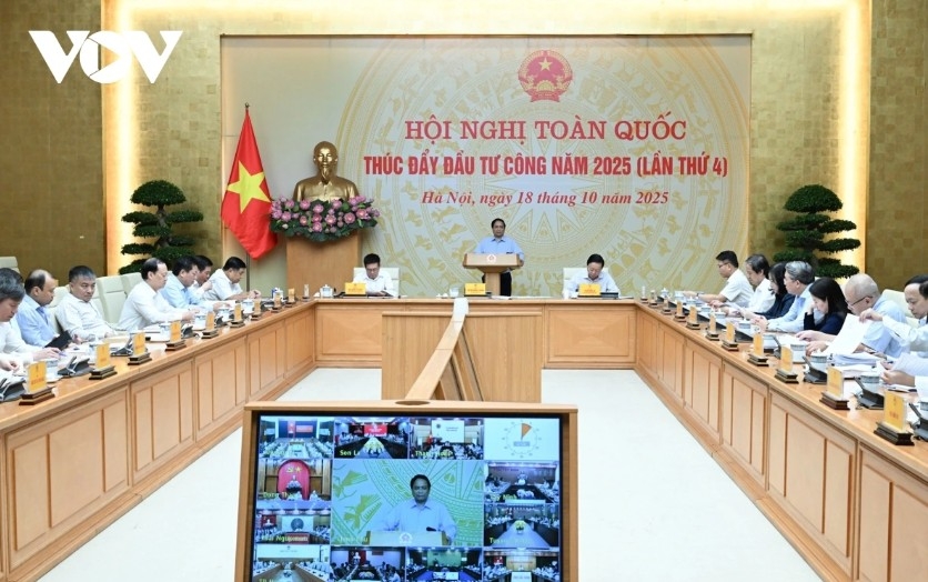 Prime Minister Pham Minh Chinh chaired the fourth national conference on boosting public investment in 2025 at the Government Office in Hanoi on October 18, which was connected online to 34 centrally-run provinces and cities.