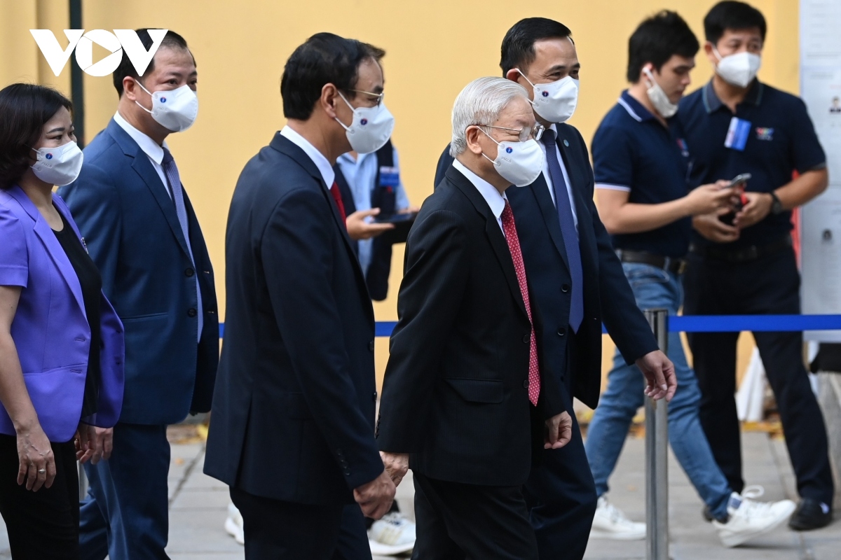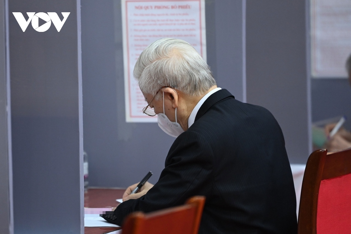 VOV.VN - Many senior leaders alongside more than 69 million voters across the nation on May 23 morning began to cast their votes to choose suitable members to the 15th National Assembly (NA) and People’s Councils at all-levels for the 2021-2026 term.