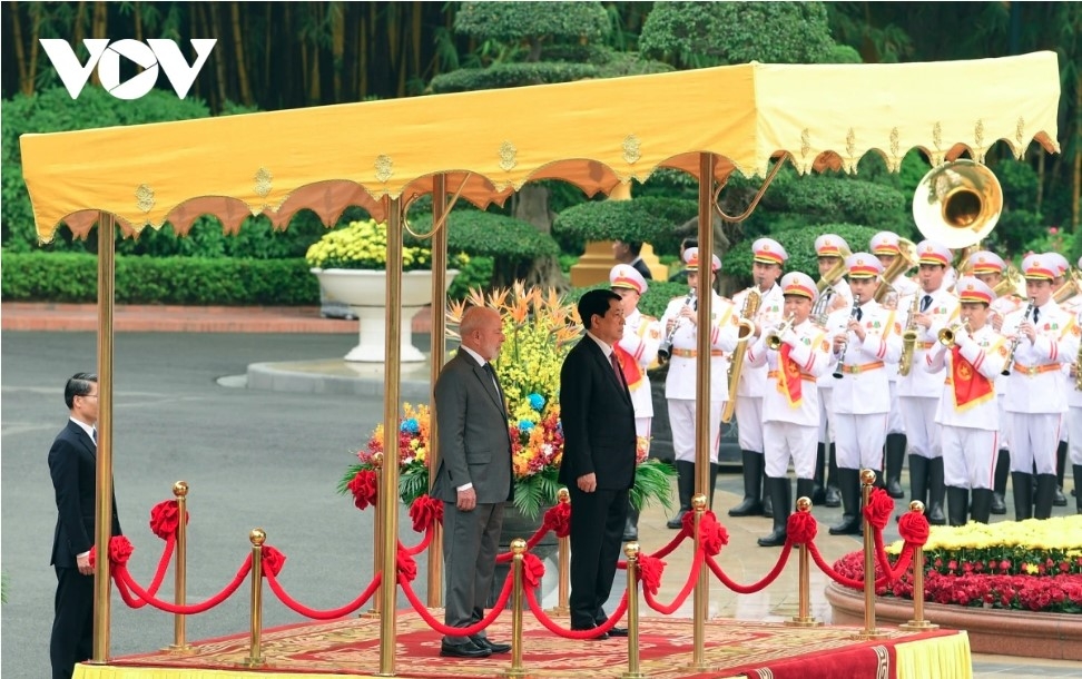 VOV.VN - State President Luong Cuong hosted a state-level welcome ceremony for his Brazilian counterpart Lula da Silva on the morning of March 28 in Hanoi.