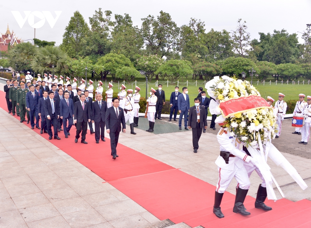 On the occasion, NA Chairman Hue and his high-ranking delegation laid a wreath at the Memorial of Unknown Martyrs in Vientiane.