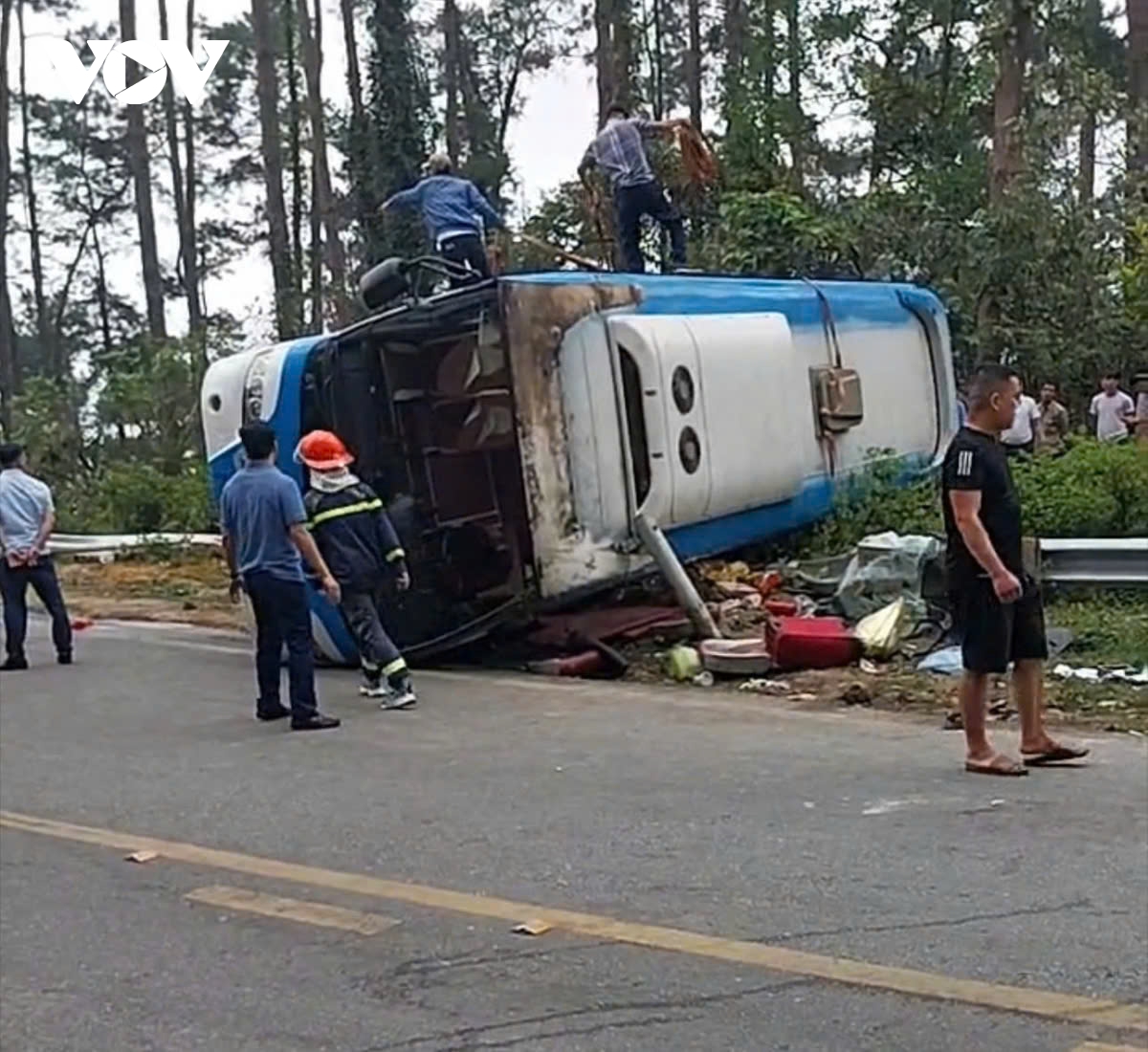 35-seater passenger bus overturns on Tam Dao Pass, heavy casualties reported