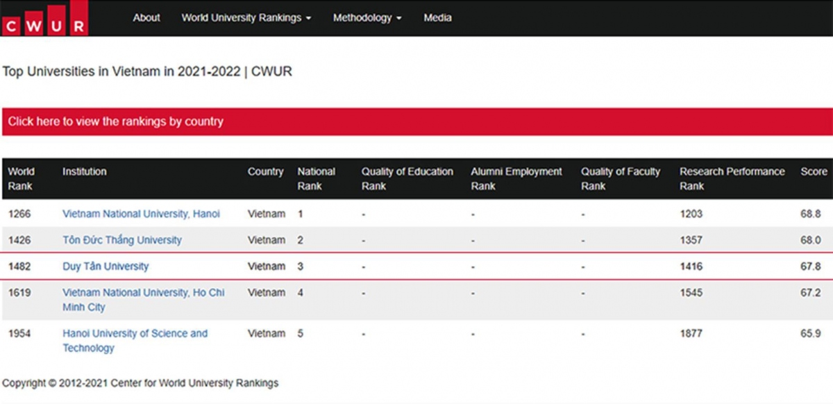 In third place in the national rankings is Duy Tan University which is also placed at 1,482nd in the world.
