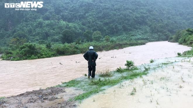 As a result of the heavy downpours, water levels in the rivers and streams in Huong Hoa and Dakrong districts of Quang Tri province rise at an alarming rate.