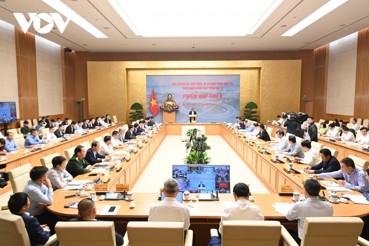 VOV.VN - Prime Minister Pham Minh Chinh has requested that ministries, agencies, and localities redouble efforts to remove bottlenecks faced by national and key transport projects while chairing the eighth hybrid meeting on November 25.