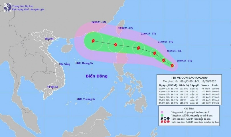 The experts predicted Ragasa would be an extremely powerful storm, possibly reaching super typhoon status with sea waves exceeding 10m, creating extremely rough seas and posing a severe danger to vessels operating in the northern and central parts of the East Sea.